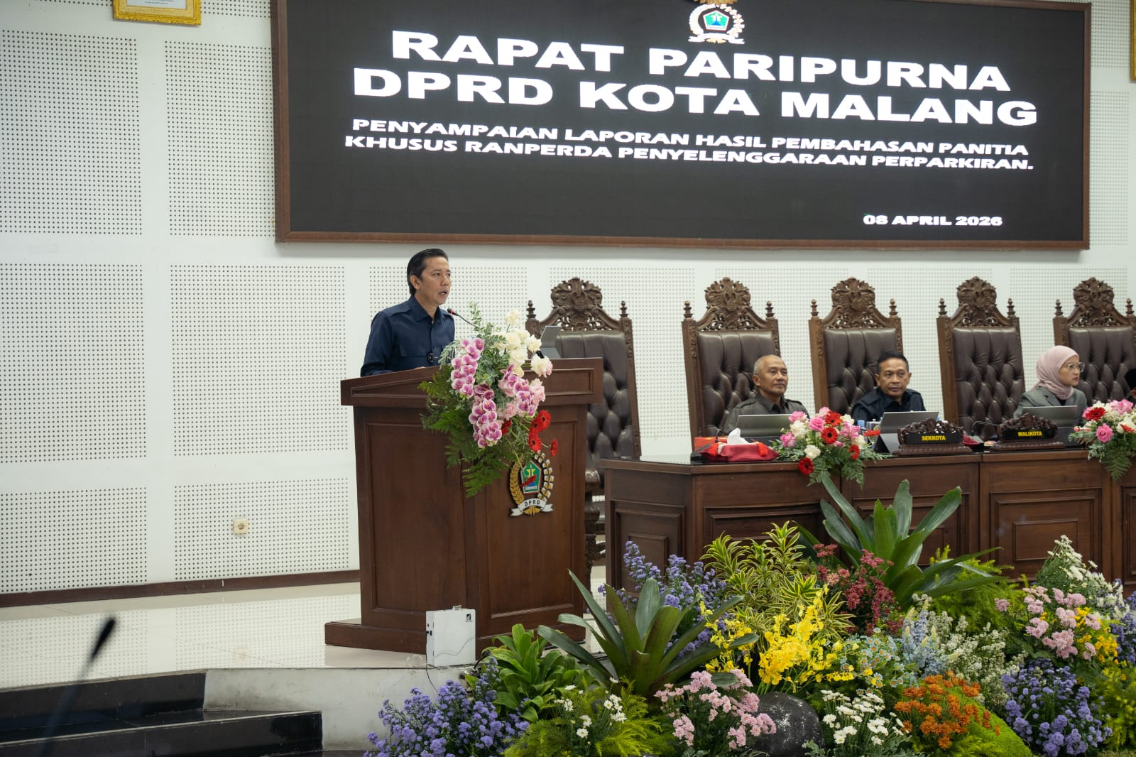 LiputanMalang– Panitia Khusus (Pansus) DPRD Kota Malang menyampaikan laporan hasil pembahasan Rancangan Peraturan Daerah (Ranperda) tentang Penyelenggaraan Perparkiran dalam rapat paripurna yang digelar di Gedung DPRD Kota Malang, Rabu (8/4/2026).